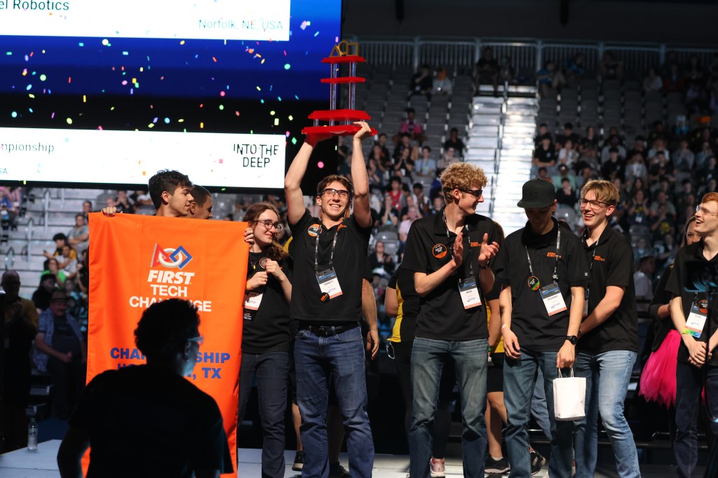 18139 Rebel Robotics and 20077 The Indubitables performed incredibly well at the FIRST Championship last month in Houston, TX, shocking teams from across the globe, and putting FTC Nebraska on the map. Despite our small and developing region, our teams claimed 2/12 slots in the interdivisional finals out of 9000+ teams worldwide, and each claimed their own awards due to their excellence in judging. Here is a list of awards and stats from the competition: